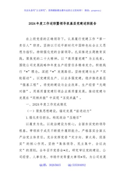 / 2024年度工作述职暨领导抓基层党建述职报告