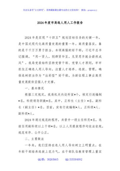 / 2024年度市局选人用人工作报告