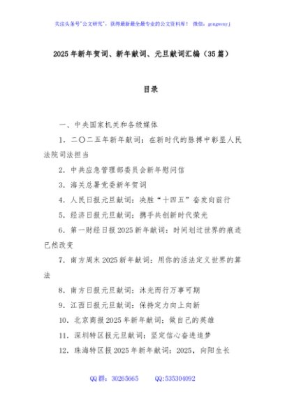 / (35篇)2025年新年贺词、新年献词、元旦献词汇编