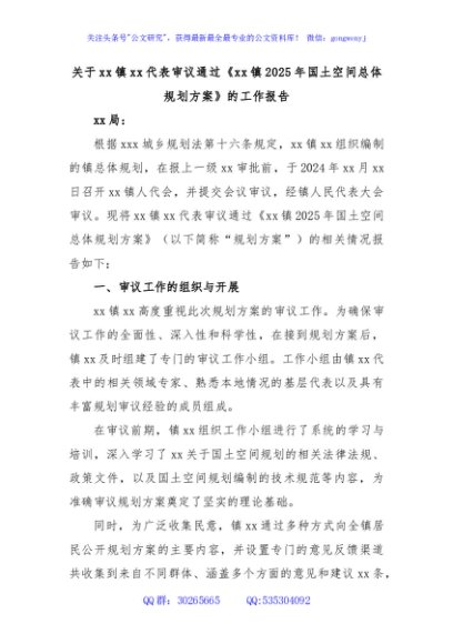 / 关于xx镇人大代表审议通过《xx镇2025年国土空间总体规划方案》的工作报告