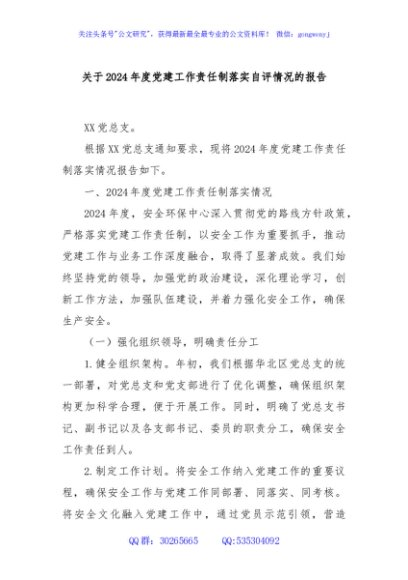 / 关于2024年度党建工作责任制落实自评情况的报告