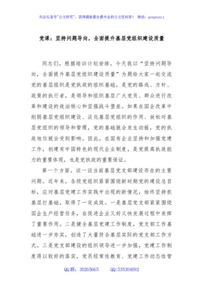 / 党课:坚持问题导向,全面提升基层党组织建设质量