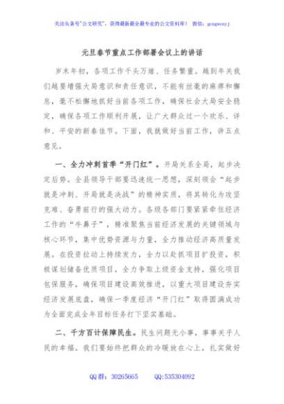 元旦春节重点工作部署会议上的讲话