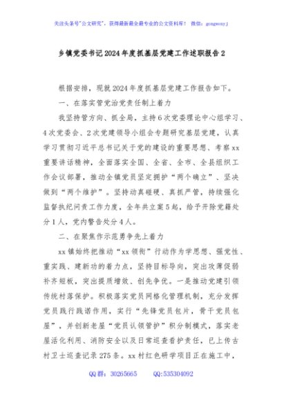 / 乡镇党委书记2024年度抓基层党建工作述职报告2