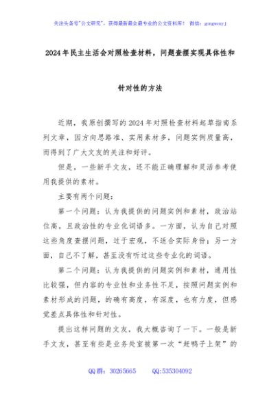 / 2024年民主生活会对照检查材料,问题查摆实现具体性和针对性的方法