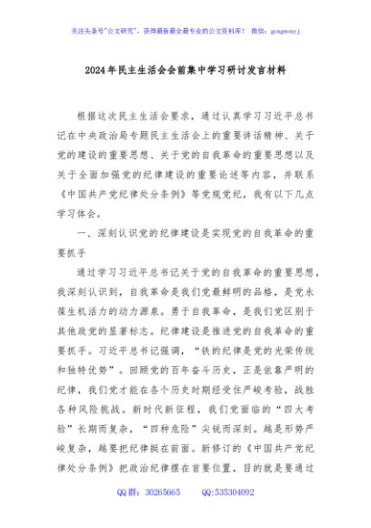 / 2024年民主生活会会前集中学习研讨发言材料