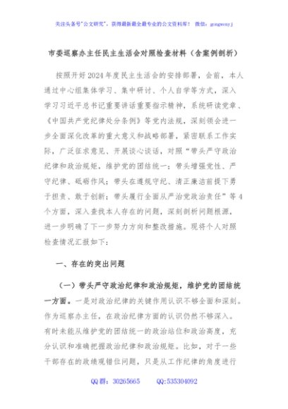 / 市委巡察办主任民主生活会对照检查材料(含案例剖析)