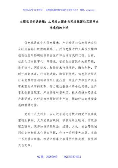 / 主题党日党课讲稿:从网络大国走向网络强国让互联网点亮我们的生活