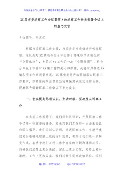 XX届市委巡察工作会议暨第X轮巡察工作动员部署会议上的表态发言