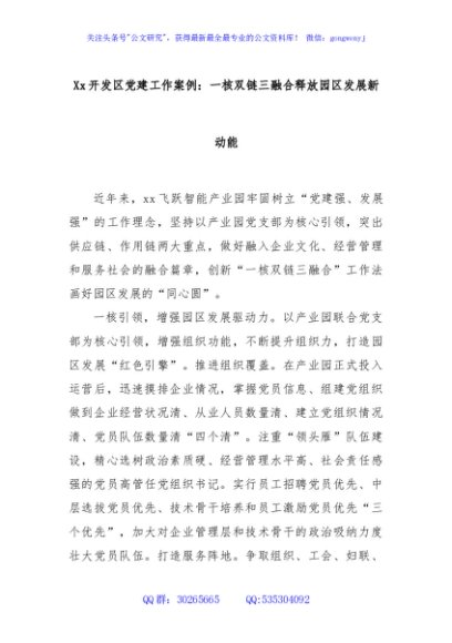 / Xx开发区党建工作案例:一核双链三融合释放园区发展新动能