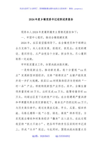 / 2024年度乡镇党委书记述职述责报告