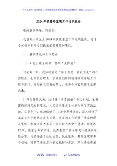 / 2024年抓基层党建工作述职报告