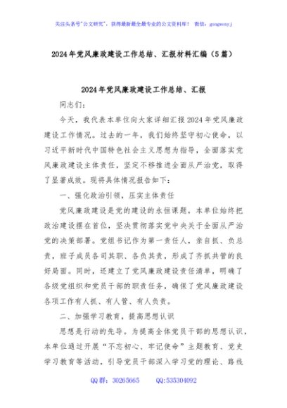/ (5篇)2024年党风廉政建设工作总结、汇报材料汇编