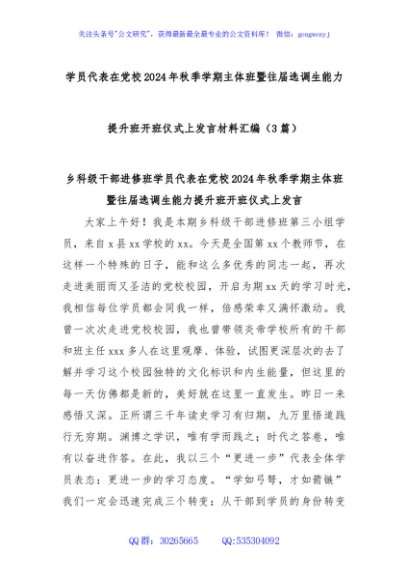 / (3篇)学员代表在党校2024年秋季学期主体班暨往届选调生能力提升班开班仪式上发言材料汇编