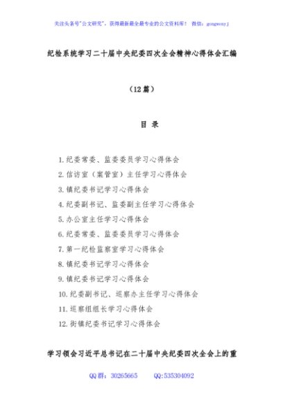 (12篇)纪检系统学习二十届中央纪委四次全会精神心得体会汇编