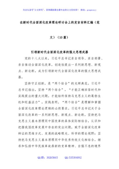 / (10篇)在新时代全面深化改革理论研讨会上的发言材料汇编(范文)