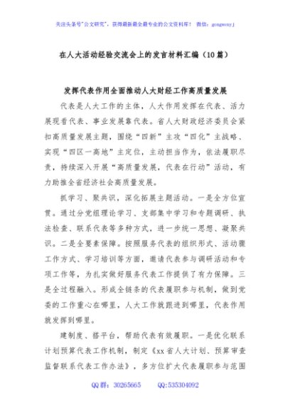 / (10篇)在人大活动经验交流会上的发言材料汇编