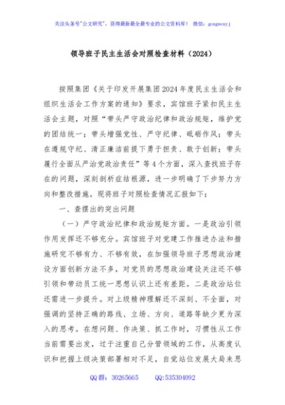 / 领导班子民主生活会对照检查材料(2024)