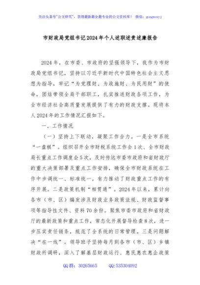 / 市财政局党组书记2024年个人述职述责述廉报告
