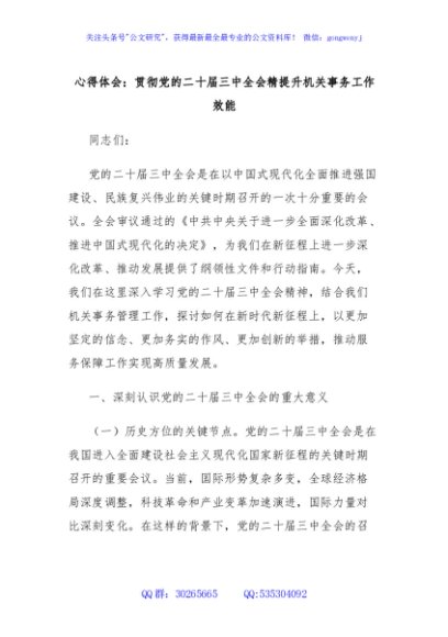 / 心得体会:贯彻党的二十届三中全会精提升机关事务工作效能