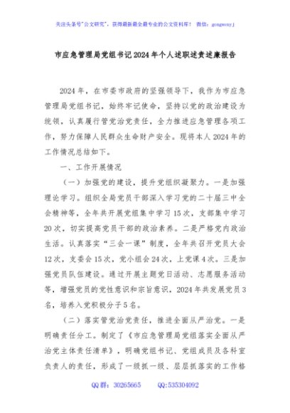 / 市应急管理局党组书记2024年个人述职述责述廉报告