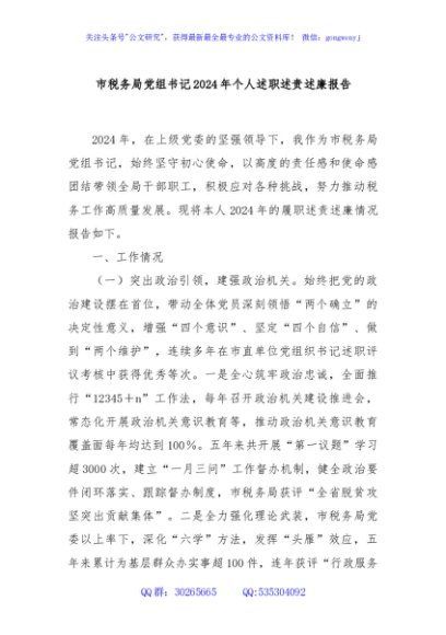 / 市税务局党组书记2024年个人述职述责述廉报告