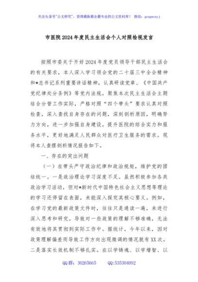 市医院纪委书记2024年度民主生活会个人对照检视发言材料