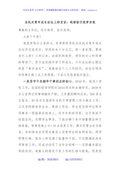 / 在机关青年成长论坛上的发言:砥砺前行筑梦有我