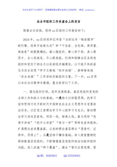 / 在全市组织工作务虚会上的发言