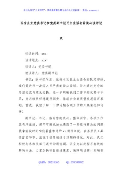 / 国有企业党委书记和党委副书记民主生活会前谈心谈话记录