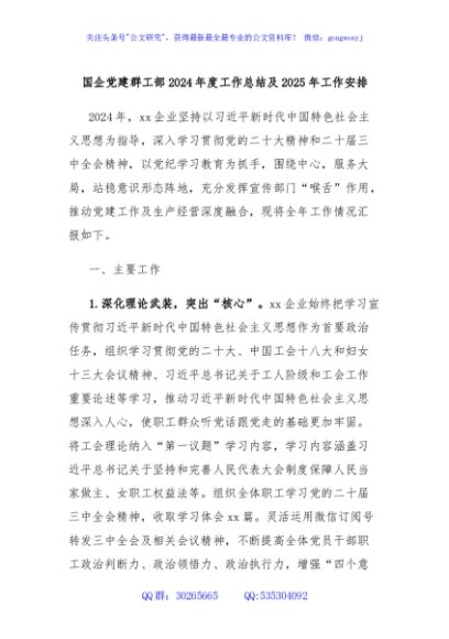 / 国企党建群工部2024年度工作总结及2025年工作安排