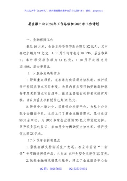 / 县金融中心2024年工作总结和2025年工作计划