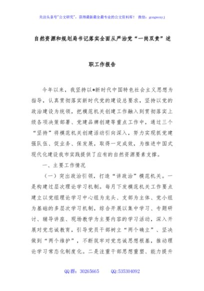/ 自然资源和规划局书记落实全面从严治党“一岗双责”述职工作报告
