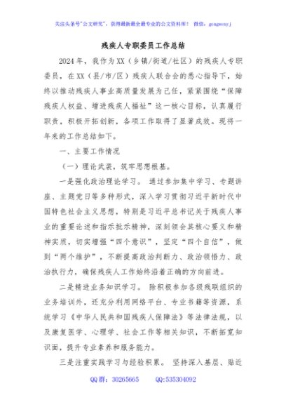 / 残疾人专职委员工作总结