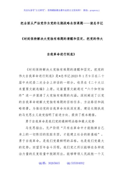 把全面从严治党作为党的长期战略永恒课题——读总书记《时刻保持解决大党独有难题的清醒和坚定,把党的伟大自我革命进行到底》