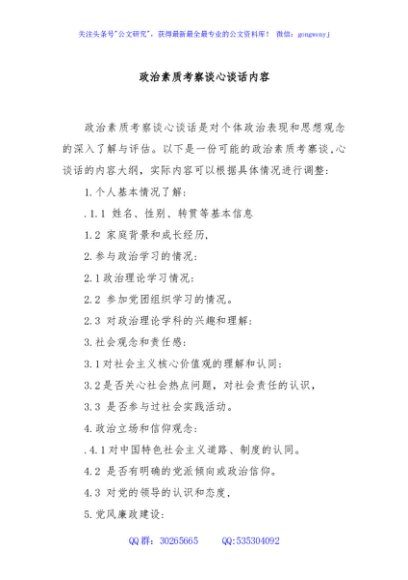 / 政治素质考察谈心谈话内容