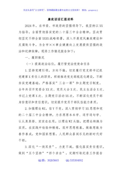 / 廉政谈话汇报材料