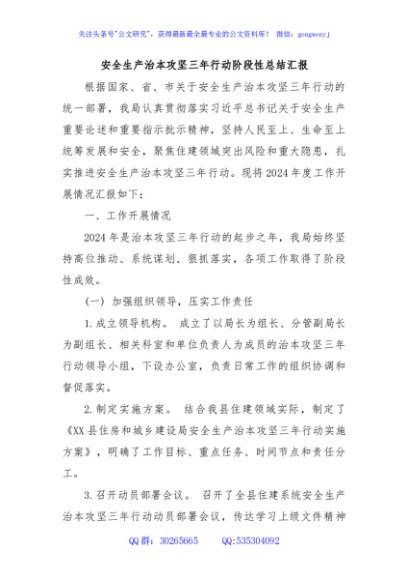 / 安全生产治本攻坚三年行动阶段性总结汇报