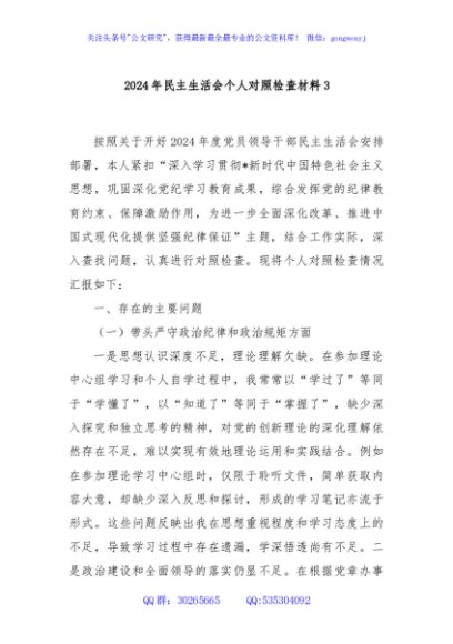 / 2024年民主生活会个人对照检查材料3