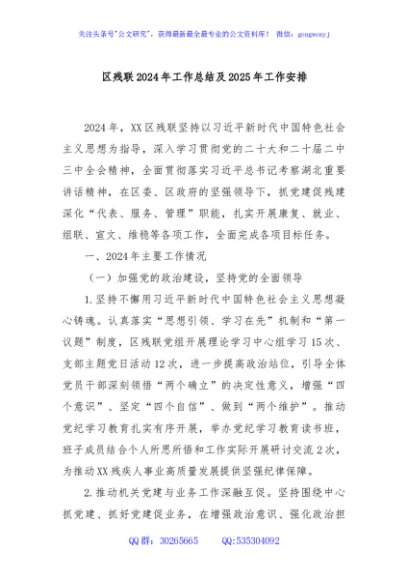 / 区残联2024年工作总结及2025年工作安排