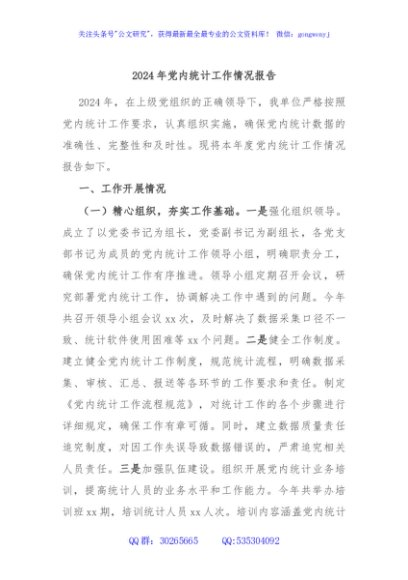 / 2024年党内统计工作情况报告