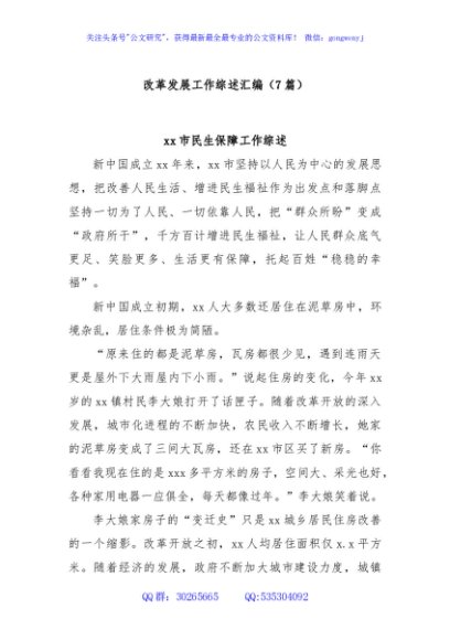/ (7篇)改革发展工作综述汇编