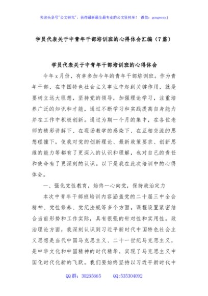 / (7篇)学员代表关于中青年干部培训班的心得体会汇编
