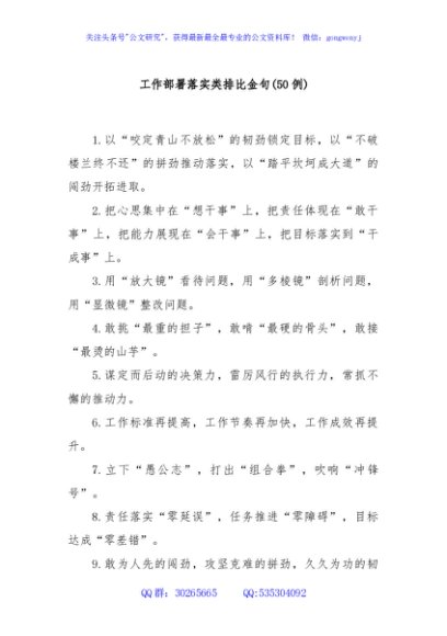 / (50例)工作部署落实类排比金句