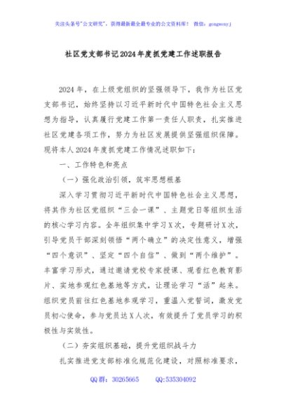 / 社区党支部书记2024年度抓党建工作述职报告