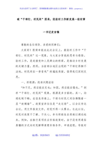 / 破“干部忙、村民闲”困局,促驻村工作新发展—驻村第一书记发言稿