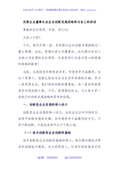 / 民营企业董事长在企业创新发展战略研讨会上的讲话