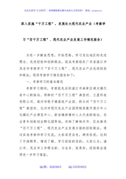 深入实施“千万工程”,发展壮大现代农业产业(考察学习“百千万工程”、现代农业产业发展工作情况报告)