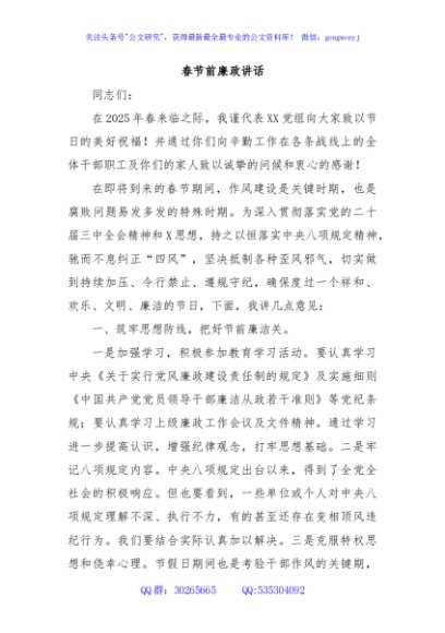 / 春节前廉政讲话