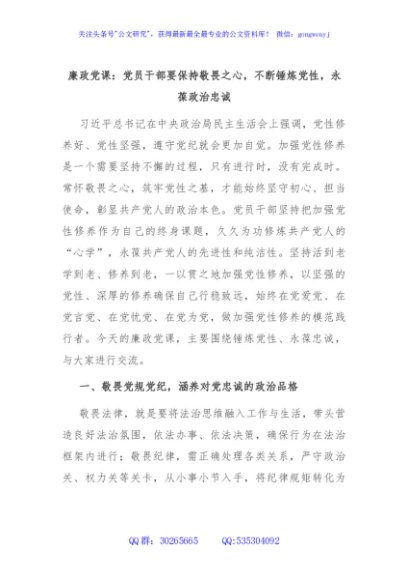 / 廉政党课:党员干部要保持敬畏之心,不断锤炼党性,永葆政治忠诚